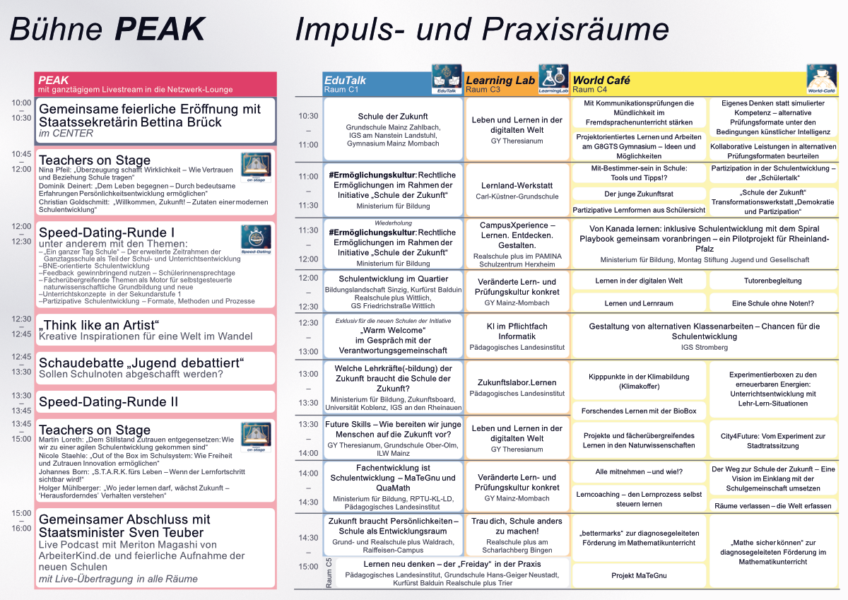 - Begegnung mit Menschen, die Schule im Land verändern – Schulleitungen, Lehrkräfte, Schülerinnen und Schüler, Partner aus Wissenschaft, Politik und Zivilgesellschaft.