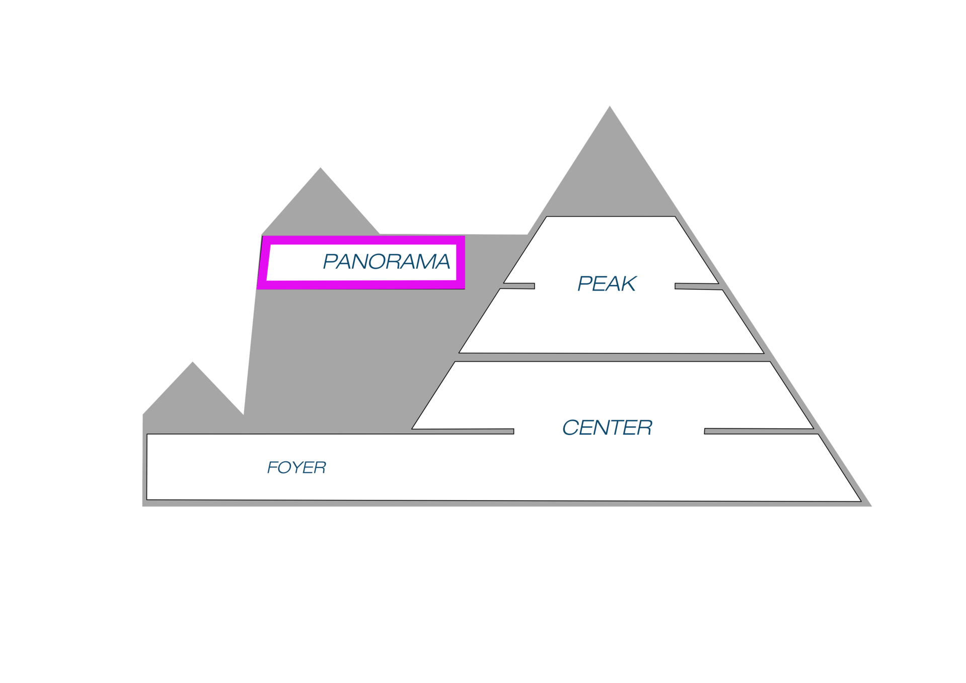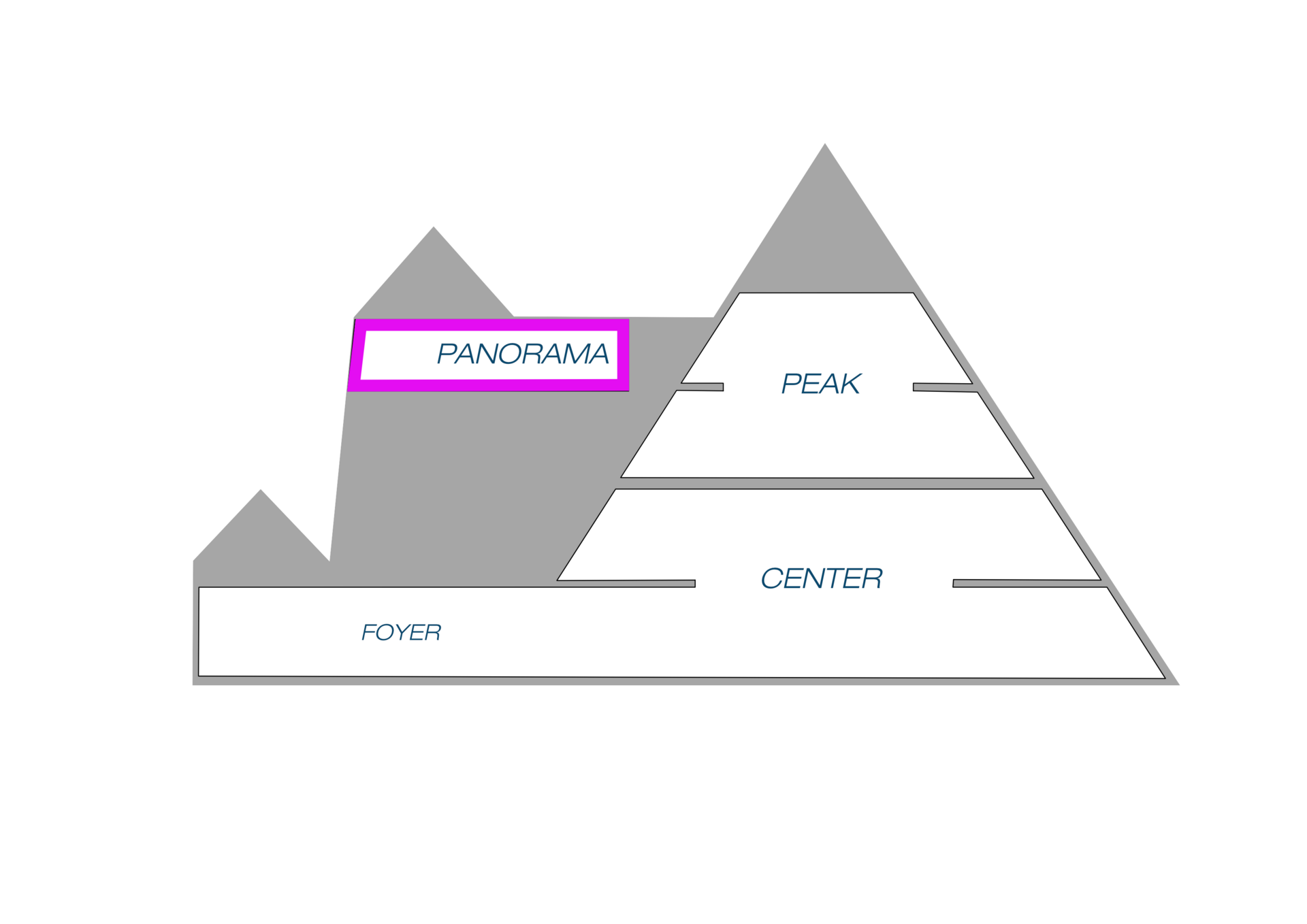 Die Ebene “Panorama” erreichen Sie vom Foyer und vom unteren Peak-Bereich aus. Folgen Sie dazu den grünen Boden-Markierungen.